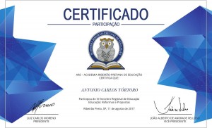 CERTIFICADO DE PARTICIPAÇÃO NO III ENCONTRO REGIONAL DE EDUCAÇÃO DA ARE – ACADEMIA RIBEIRÃO-PRETANA DE EDUCAÇÃO – 2017 III ENCONTRO REGIONAL DE EDUCAÇÃO Educação: Reformas e Propostas 11 de agosto de 2017. Das 19:00 às 22:00 horas...
