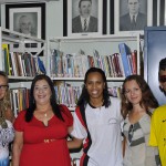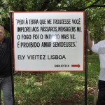 No encerramento, os poetas homenageados nas placas indicativas do local da Biblioteca tiraram fotos junto aos seus respectivos versos.