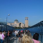 Depois, fomos conhecer, subindo pela extensa passarela — por onde também subiam e desciam, inclusive de joelhos, peregrinos de todo o país— a Basílica Velha.