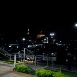 Após duas paradas — no Graal-Topázio e Terminal Rodoviário Arco-íris — ao descer do ônibus vislumbrei a Basílica Nova, pouco iluminada, ainda envolta na escuridão da madrugada: mas mesma assim imponente, magnífica.