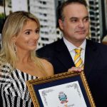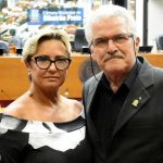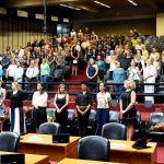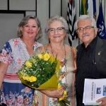 PRESIDENTE – CONVIDO OS VEREADORES E AS AUTORIDADES PRESENTES PARA QUE FAÇAM A ENTREGA DO DIPLOMA PARA A DIRETORA DO COLÉGIO ANCHIETA PROFA. ALCILENE SOARES AGUIAR.
