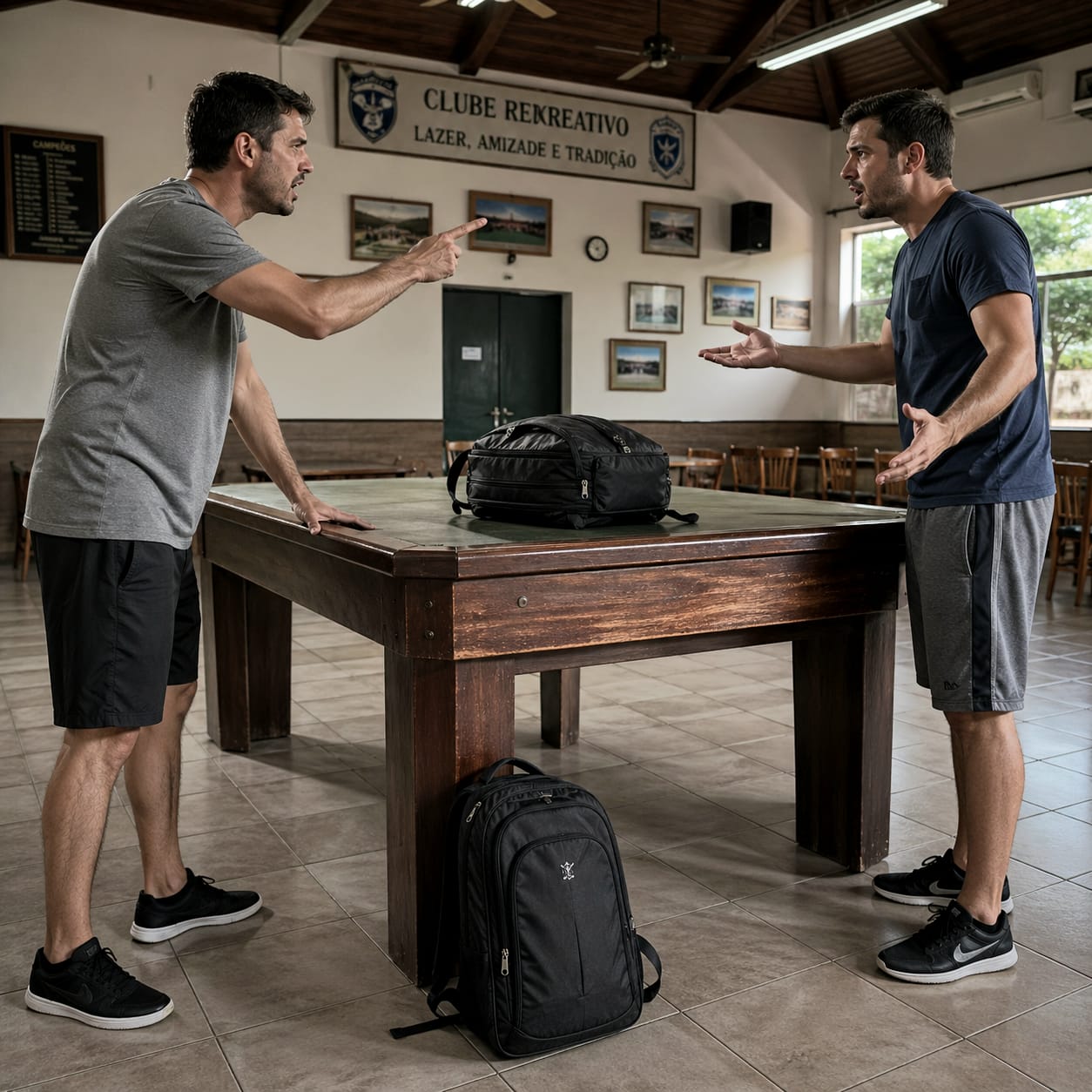 Um associado, amigo meu, pessoa conhecida, respeitada e muito bem quista pela comunidade do clube, chegou logo após a abertura do mesmo. Como tantos fazem — e talvez sem refletir profundamente sobre as implicações — colocou sua mochila com pertences sobre duas mesas — porque esperava por um convidado seu — e dirigiu-se à piscina.