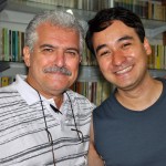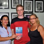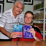 A bibliotecária Deise recebeu exemplar do livro das mãos do autor — que vieram enriquecer o acervo de mais de dois mil título e Tórtoro entregou um exemplar do seu livro “Repercutindo Educação” .