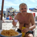 Ao sabor da batatinha frita, ou do camarão a milanesa, dando goles na cerveja gelada depois de abrir o apetite com uma caipirosca, nada é mais prazeroso do que ficar poetando ao ritmo das ondas — ou não pensando em nada — ouvindo o eterno ribombar monótono do mar, somente quebrado pela presença de buzinas de vendedores ambulantes, gritos de crianças besuntadas de protetores solares e revestidas de areia, ou pelo ruído característico do helicóptero dos bombeiros expulsando veranistas mais afoitos que enveredam mar adentro.