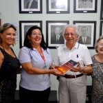 A bibliotecária Deise recebeu exemplares do livro das mãos do autor — que vieram enriquecer o acervo de mais de dois mil títulos.