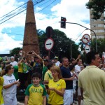 Nas calçadas tomadas por aqueles que não se propuseram à caminhada, sugeriam que cantássemos: “Lula cachaceiro, devolva meu dinheiro!”, “Fora PT leve a Dilma com você”,