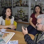 A bibliotecária Deise recebeu exemplar do livro das mãos de Adriana e Lilian, que veio enriquecer o acervo de mais de dois mil títulos.